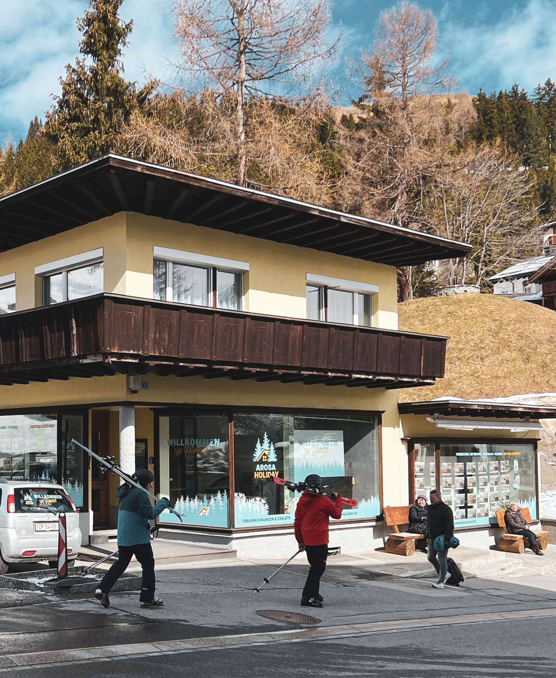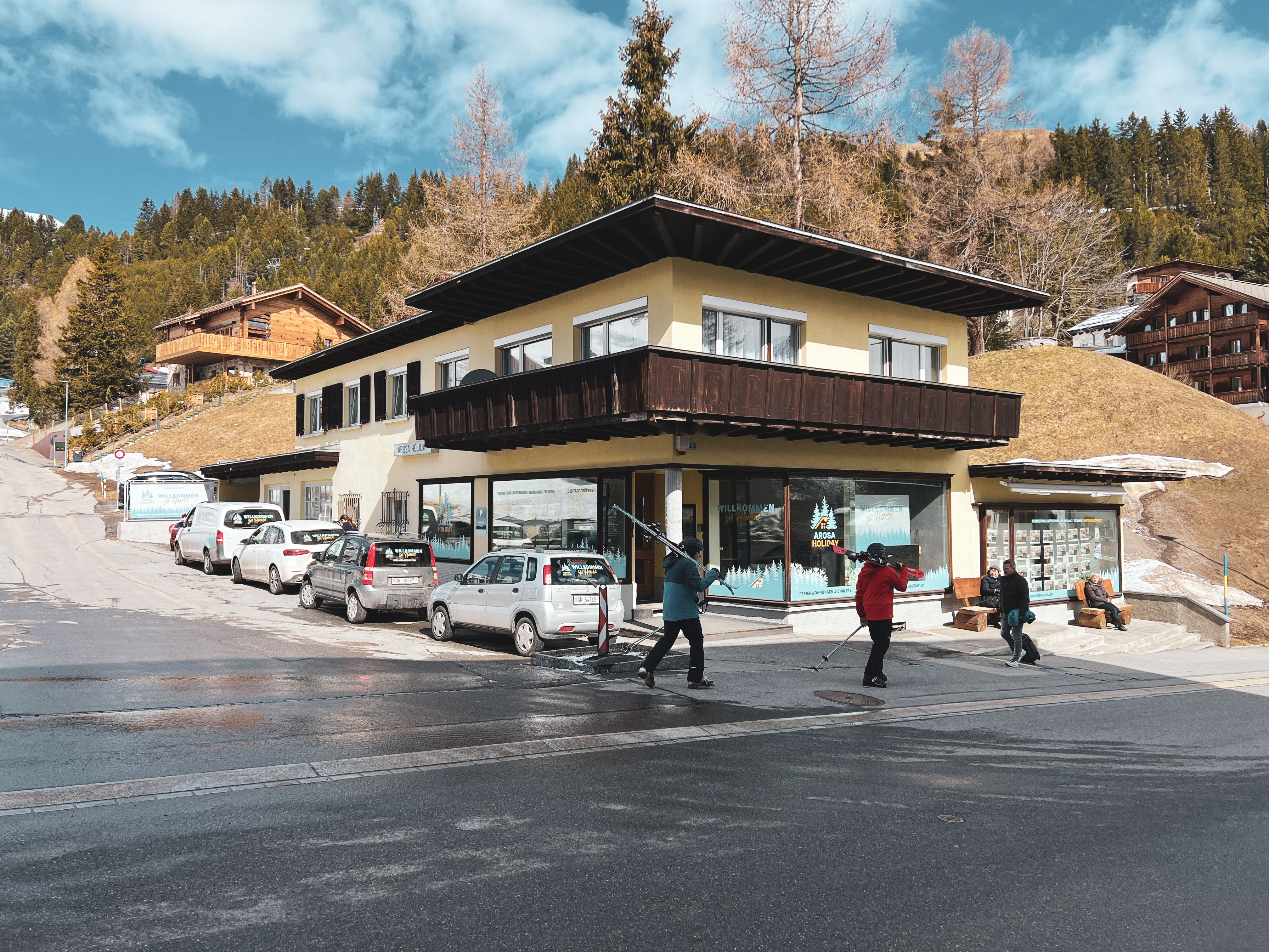 Mit der ersten Bahn auf den Berg, die Ski unter den Füssen, das Equipment am Rücken. Jetzt nur keine Bruchlandung! Die Berghütte ist erreicht. Models, Sonnencreme, Akkustand... check. Arbeiten im schönsten Schneesportgebiet – Arosa Lenzerheide. Danke: Brüggerstuba, Sternebar, Sattelhütte, Piz Scalottas und Alp Stätz.