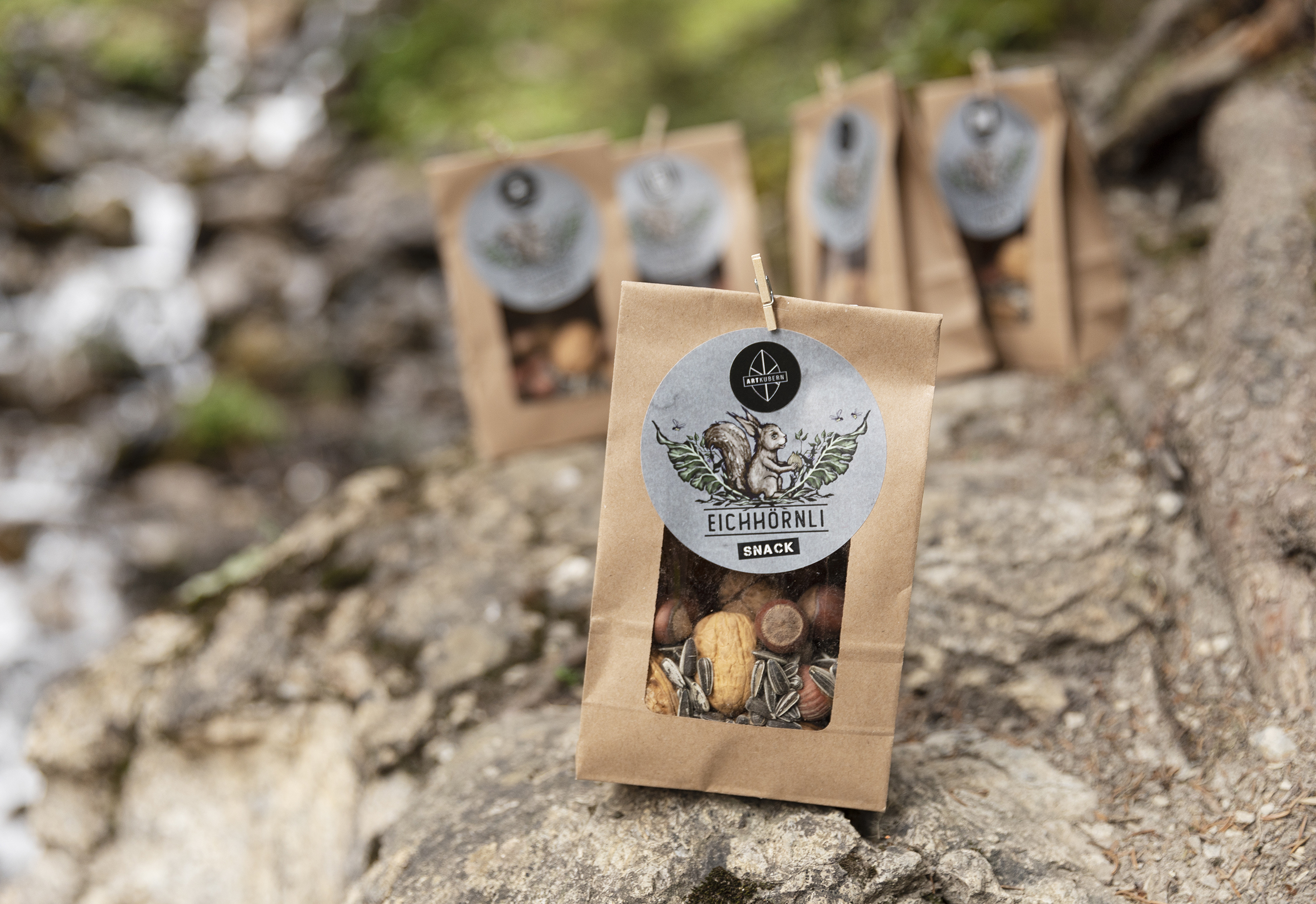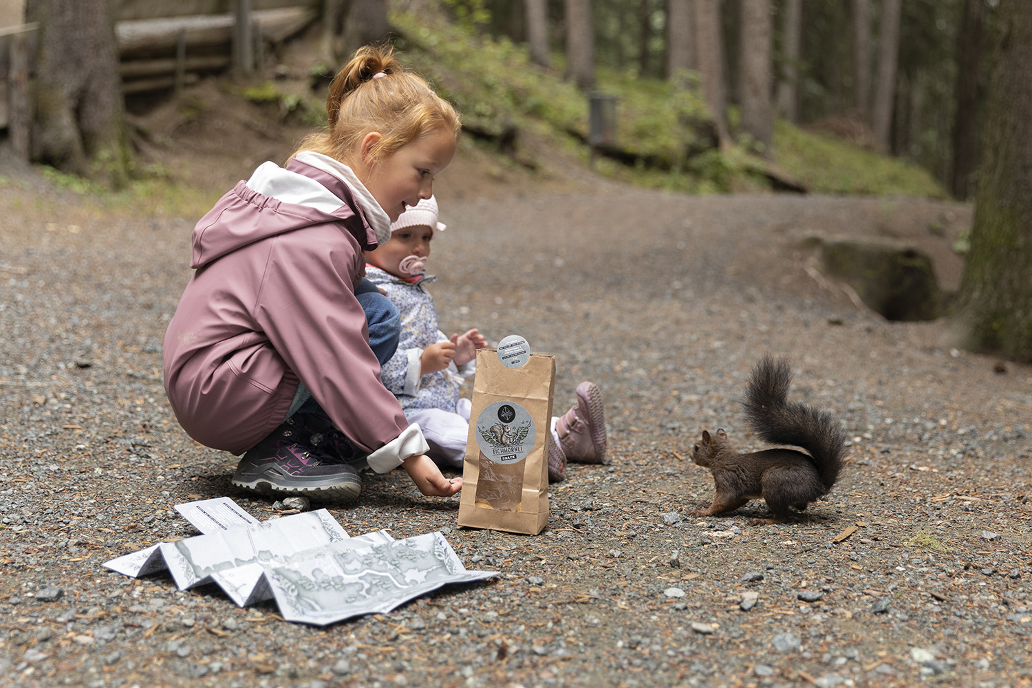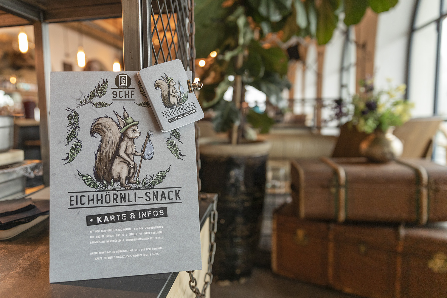 Als Michaela Kubern noch in der Gastronomie arbeitete, wurde sie immer wieder von Gästen angesprochen, die nach Informationsmaterial und einer Karte speziell zum Eichhörnliweg gefragt haben. Ein paar Monate später hat sie eine wunderschöne Karte mit Futtersäckli kreiert, die nun in diversen Restaurants in Arosa erhältlich sind. Das Fotoshooting mit den Eichhörnli war sehr lebhaft. Doch die flauschigen Nager liessen sich dank ein paar kleinen Bestechungsnüssen gut in Szene setzen.