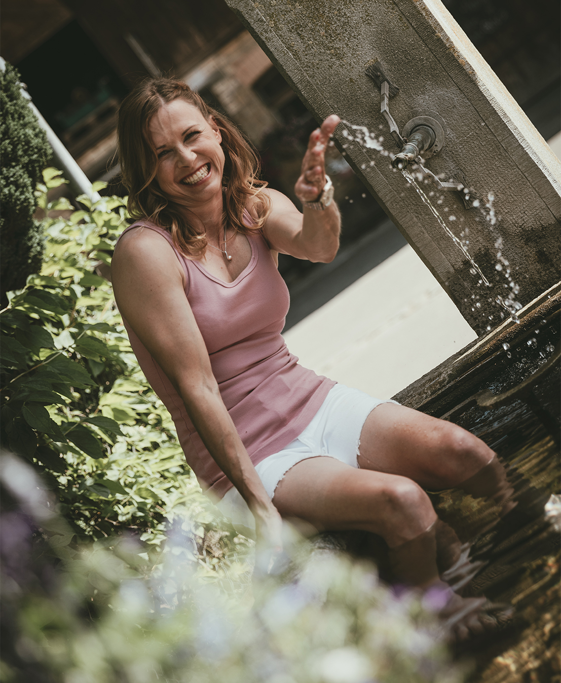Eine feuchte Abkühlung am Brunnen – genau das Richtige nach einem intensiven Sponsoren-Shooting bei sommerlich heissen Temperaturen. Dabei entstanden diese ganz privaten Erinnerungsbilder mit der herzlichen Profisportlerin und erfolgreichen Handbike-Athletin Sandra Stöckli.